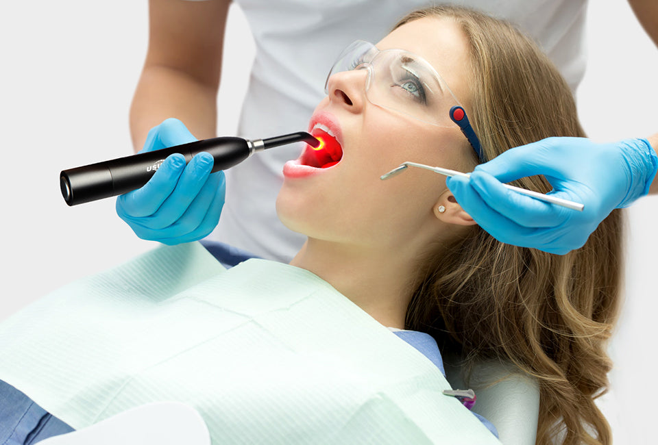 Red light therapy uses a specific level of heat and doesn’t hurt or burn oral mucosa, meanwhile, it can reduce the number of inflammatory cells, increases the proliferation of fibroblasts that synthesize collagen and other matrix macromolecules, stimulates angiogenesis, that means create new blood vessels, and activates the mouth's anti-inflammatory, antioxidant reaction.