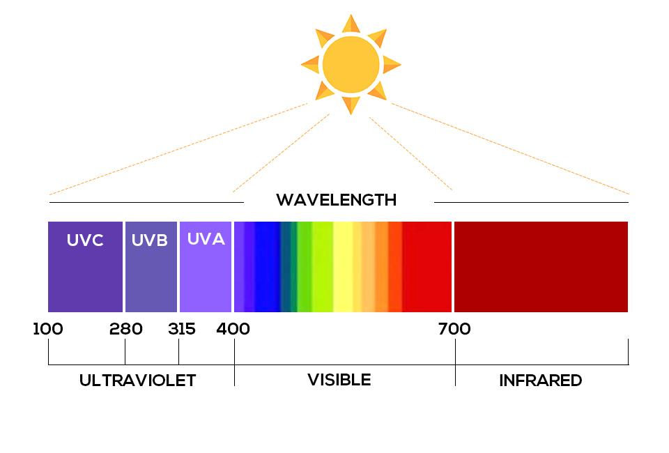 UV | 1 x 10-8 - 4 x 10-7 | 7.5 x 1014 - 3 x 1016 | 5 x 10-19 - 2 x 10-17 |