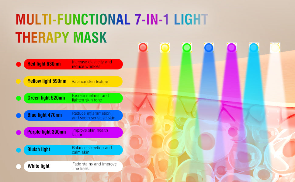 The Mask Includes 7 Colors to Combat Different Skin Problems Scientifically designed, the mask's 7 colors work synergistically to address a variety of skin issues.