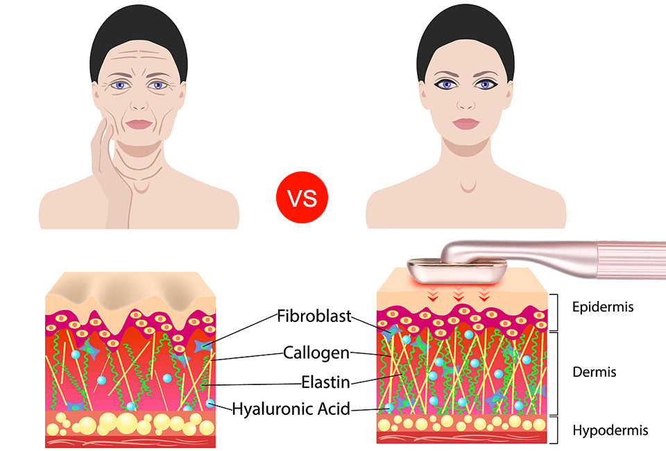 The optimal range of LED red light at 630nm helps deeply rejuvenate the skin and promotes new collagen formation. More effective than regular massage wand, and 10x faster.