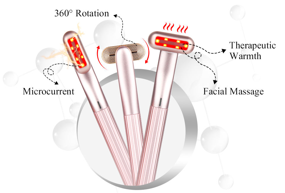 Usuie Red Light Therapy Wand can be rotated 360° to reach different areas, like eyes, cheeks, jaw, neck and upper lip.