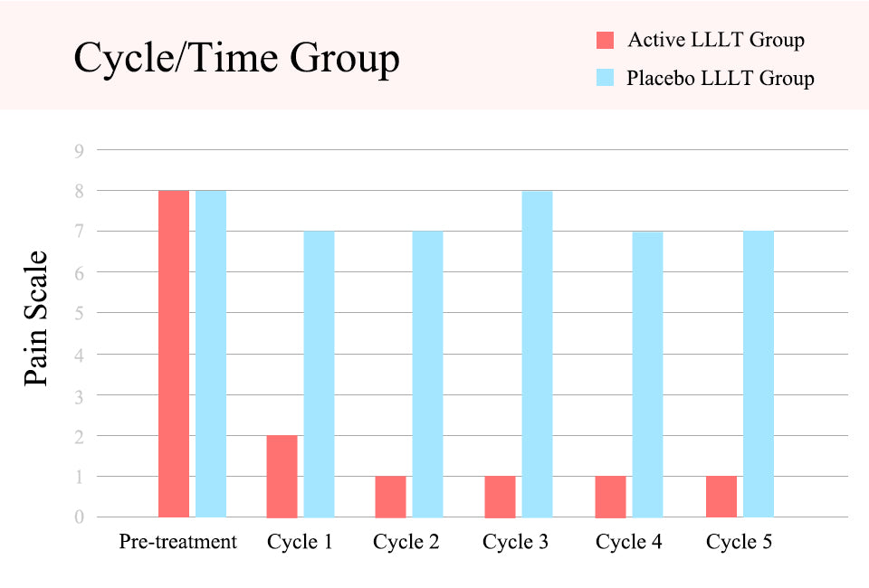 As shown on the left, the women who used red light therapy experienced significantly less dysmenorrhea than those who did not use it, and continued use resulted in even better results(Data Source
